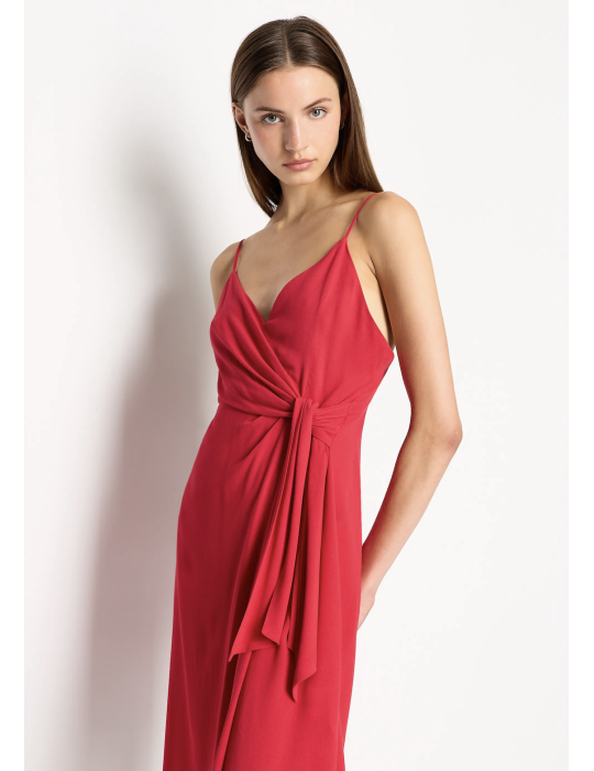 La robe modèle Tulipe se caractérise par le devant croisé, les fines bretelles et son col en V, ce qui la rend le modèle unique.