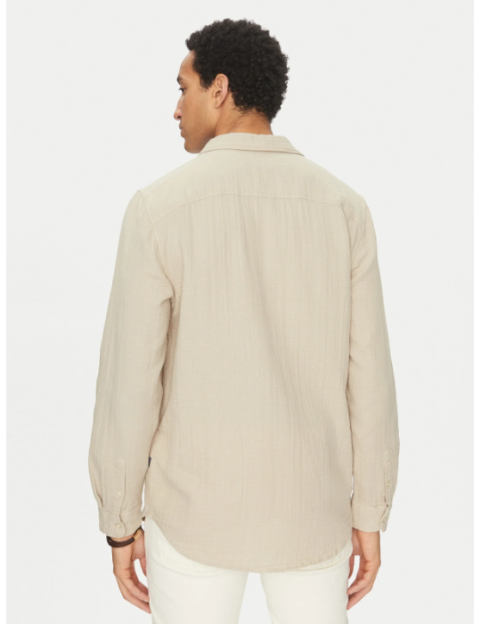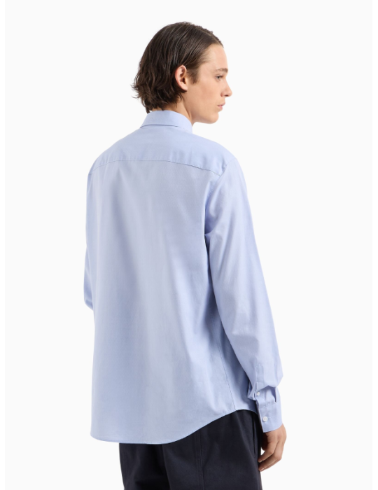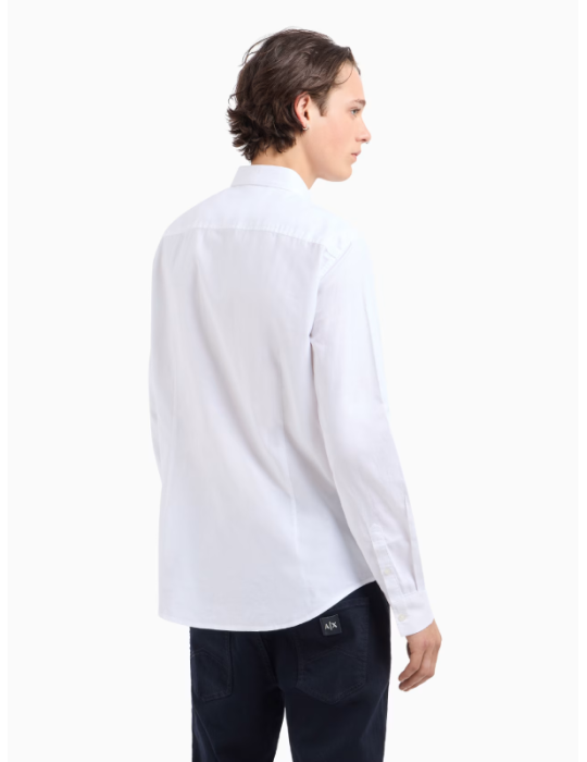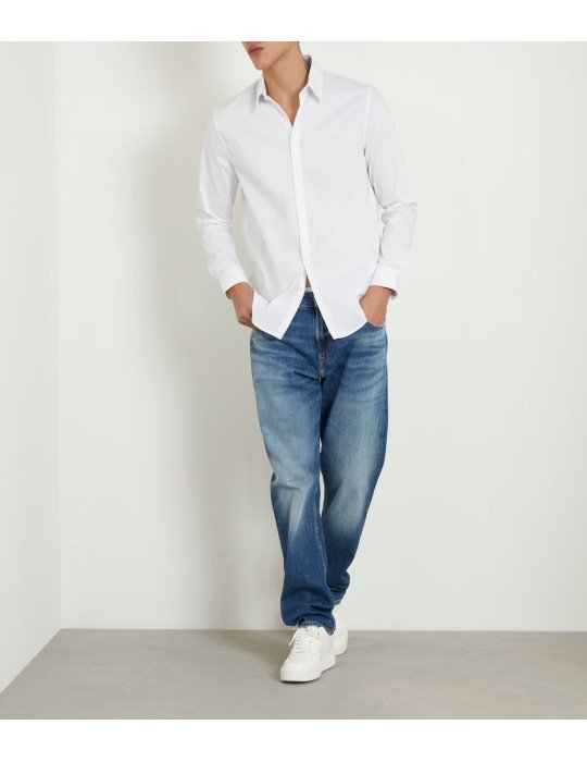 Chemise coupe slim en popeline de coton stretch avec un travail jacquard à motifs entrecoupé du logo. Cette chemise présente un col classique, une patte de boutonnage apparente et des poignets boutonnés.