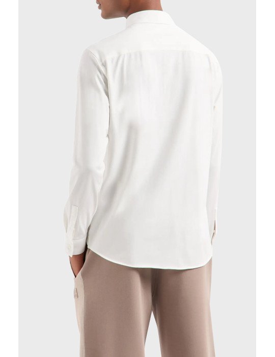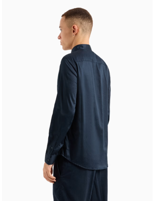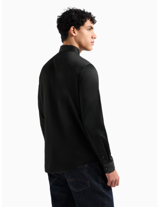 Chemise coupe slim en coton stretch satiné avec col classique, patte recouverte, poignets boutonnés et logo brodé ton sur ton sur la poitrine.